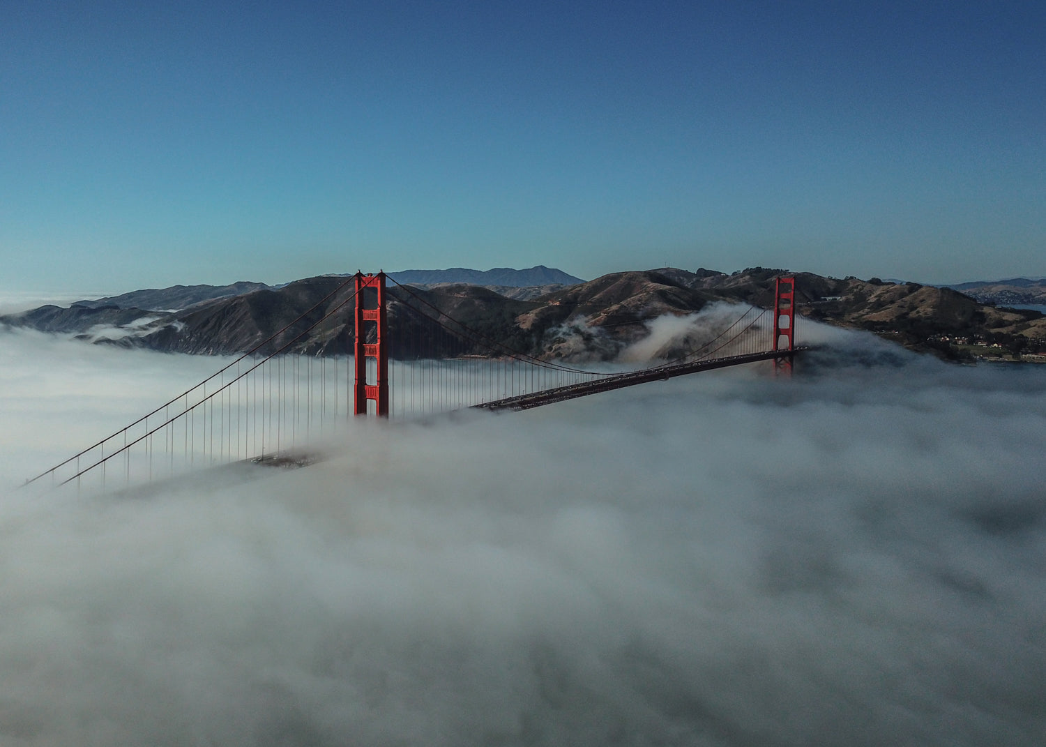 A photo of Golden Gate Bridge in San Francisco during the Karl the Fog