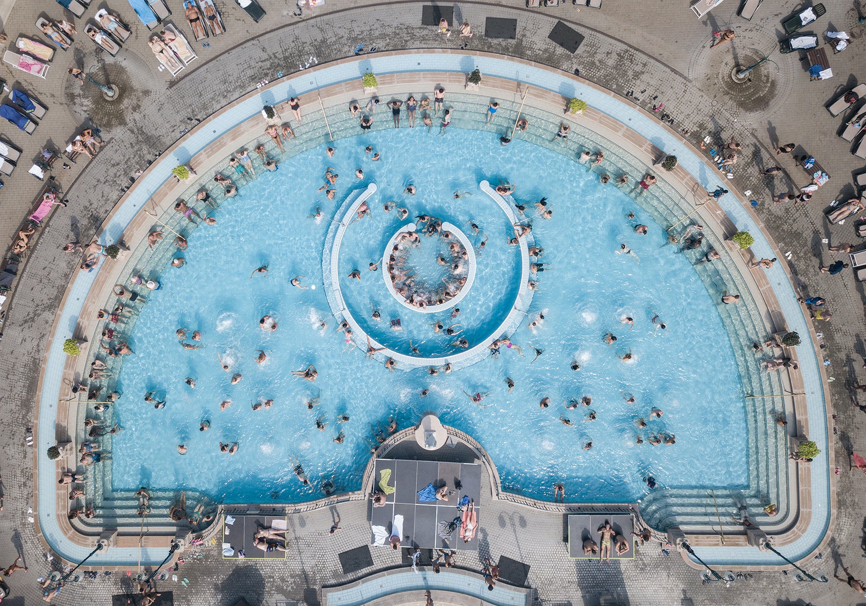 A topdown drone photo of the beach and rocks of algarve Coast in Portugal during the Summer.